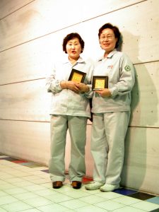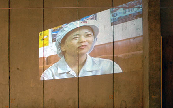 Responding to this, I created a series of installation works with an intriguing question – why are blue collar workers never given a business card? I worked closely with six female workers in one rural food factory and created individually designed name cards for them, based on their life stories. At the same time, I collected all the identically designed corporate business cards of those who worked in the headquarter office of the same company. All together in juxtaposition, thousands of name cards were installed in a pixelated landscape on the outside wall of the factory canteen (nameless landscape, 2007). I also individually embroidered and framed the names of all workers in the factory and installed them into a shape of an empty frame (everyone’s souvenir, 2007), implying that the unique identity of manufacturing workers is not socially recognised.