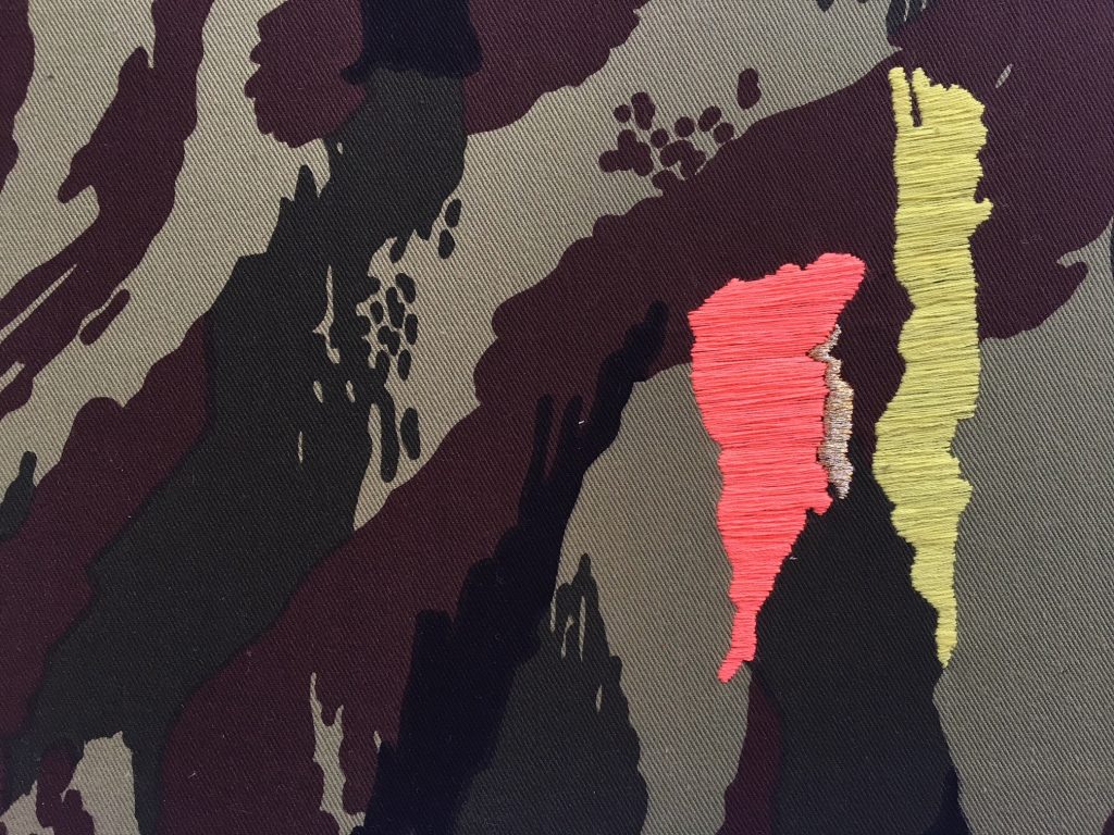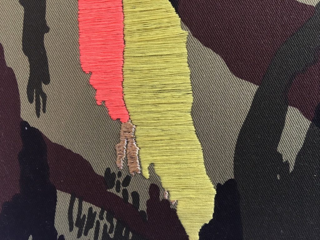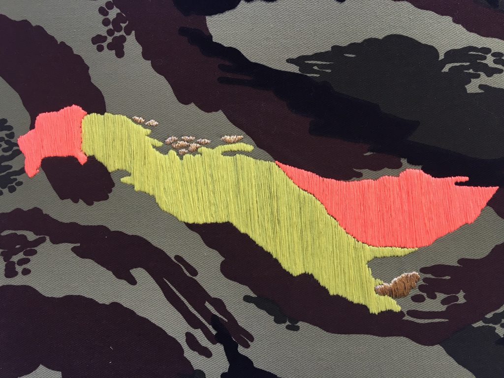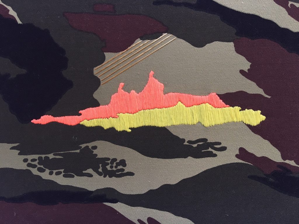 * 2D installation of twenty one embroidered elements, 238 x 58cm.